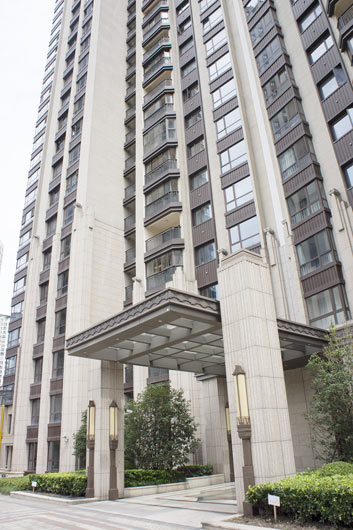 本工程位于城市中心苏州河以南的黄金地段,而且近邻静安区。工程内容:铝合金幕墙、石材幕墙、雨蓬、入口大门、灯箱等供货及安装工程。本工程大楼共计35层,标高103米,下部1-6层裙房和顶部为石材、铝板和玻璃组合幕墙,整幢楼显得非常醒目气派,外幕墙精雕细琢,勾勒的线条清晰突出,豪宅风范显露无疑。