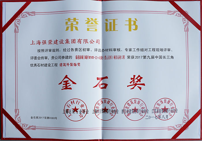 公司荣获2017年第九届中国长三角优秀石材建设工程金石奖