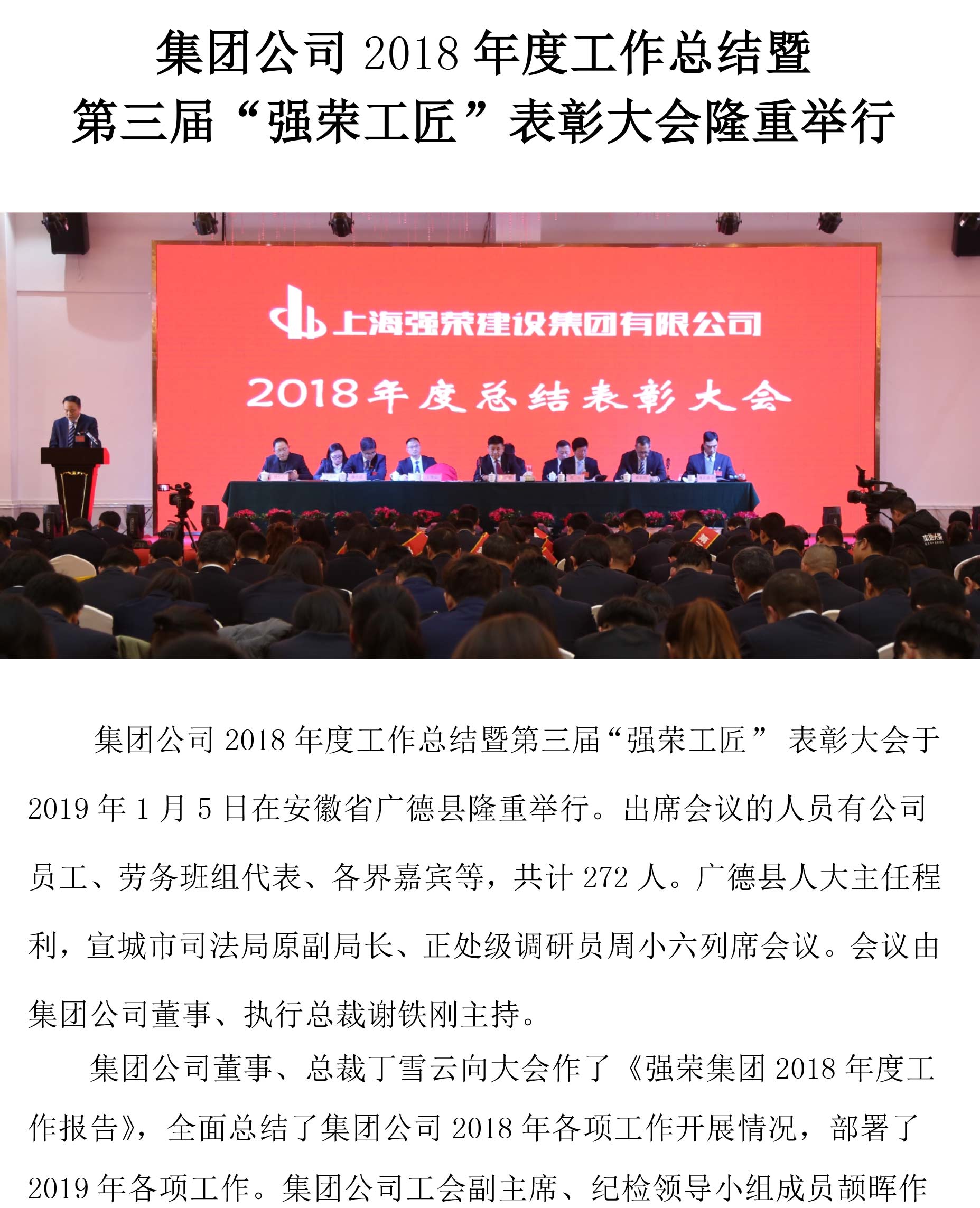 集团公司2018年度工作总结暨第三届“强荣工匠”表彰大会隆重举行