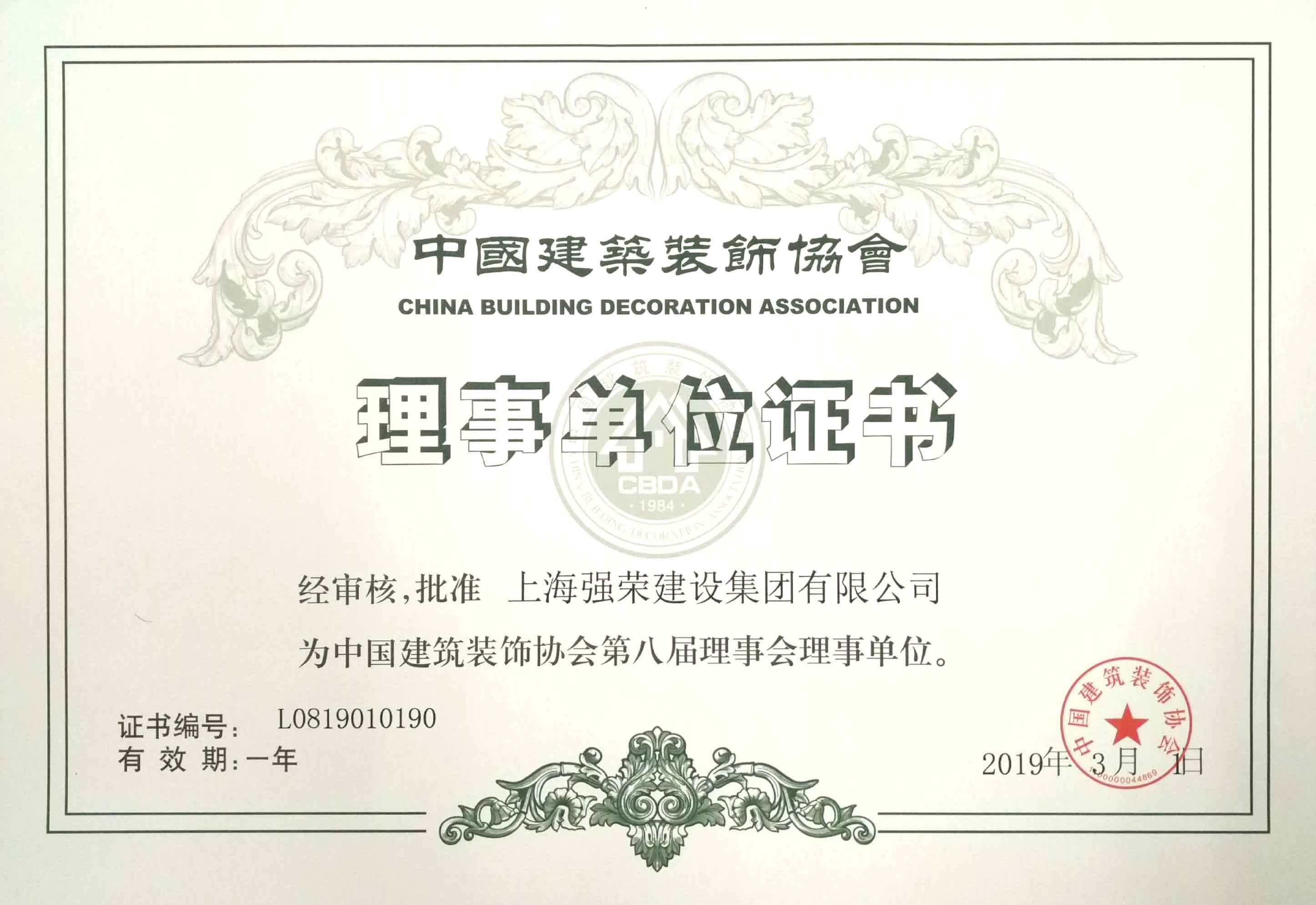 集团公司获批中国建筑装饰协会第八届理事会理事单位