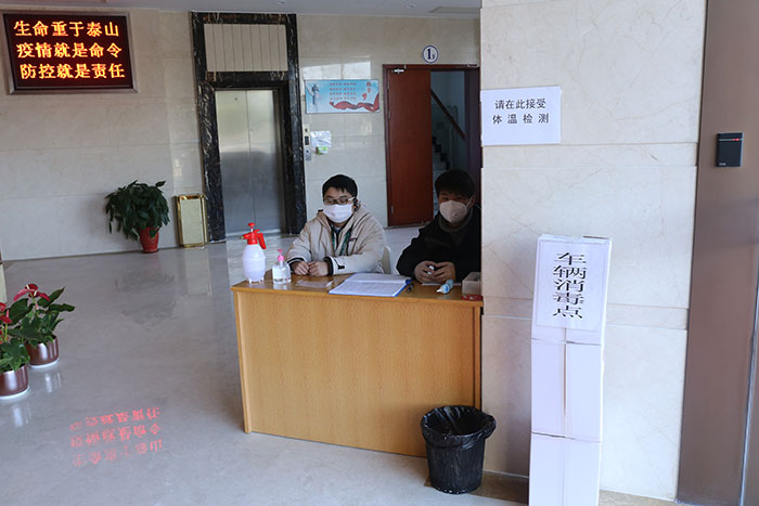 八个到位,确保打赢。一是宣传引导到位。充分利用集团公司各信息平台和通告等形式,向全体员工正确传播新型冠状病毒防控知识和信息,宣传科学的防控措施,努力提高广大员工应对新型冠状病毒的知识水平,增强防控意识,坚决做到不信谣、不传谣,坚决避免人员聚集,维护集团公司稳定。二是物资筹集到位。集团公司本部及各项目部均按照防疫周期筹足防护物资。对集团公司各部门、管理公司、子公司所筹集的口罩、消毒液、医用酒精、体温计等防护物资实行统一登记、统一管理、统一调配,各项目部所筹集的口罩、消毒液、医用酒精、体温计等防护物资要向公司报备。三是信息报送到位。建立信息每日报送制度,全面掌握公司员工假日外出情况,由人事部以电子报表形式及时向新场镇(社区)、园区上报人员返沪及健康状况等信息,督促去过(途经)重点地区员工主动申报。严格执行属地管理承诺制度,确保上报信息完整、真实。四是复工安排到位。根据集团公司工作实际情况,安排员工错峰返沪,统筹调度、科学制定复工计划,灵活安排员工分批返岗,在做好疫情防控工作的前提下,有序组织复工复产;鼓励集团公司各部门结合各自实际,采取弹性工时、远程办公、居家办公。五是体温检测到位。在集团公司1、2号楼前台分别设立体温检测点,对所有入司人员全部进行测温。温度异常的,立即安排在集团公司2号楼一楼会议室暂时隔离,第一时间联系所在新场镇卫生中心处置。对来访人员建立流动人员防控机制,实行密切观察和管控,必须凭有效身份证件登记,进行体温测量、消毒等措施。亲友探访、快递等与公司无关人员一律不准进入。防控期间,公司暂不安排应聘人员来司面试,不安排车辆集中接送员工。六是人员管控到位。严格落实重点地区返沪员工隔离观察14天和其他地区返沪员工自我体温检测、健康信息登记报告等工作制度,全力劝阻疫情严重地区员工提前返沪,对不听劝阻员工将依法依规严肃处理。七是消毒覆盖到位。提前做好办公区、宿舍和餐厅消毒工作,停办大型会议活动。认真做好复工后的疫情防控,对所有办公区域、员工宿舍、食堂、电梯、楼道、洗手间等人员日常出入地进行“早晚消毒”,并严格登记备查。八是后勤保障到位。切实加强食堂防疫管理,严格落实员工就餐配送制度,实行每天上午11:30时前食堂工作人员用一次性快餐盒分装成若干盒饭,分散领取用餐。严格按照危险废物管理要求,及时妥善处置废弃口罩等防疫废弃物,单独收集、单独运输,做到日产日清。调剂公司沪ABX776车为应急车辆,实行统一调度。