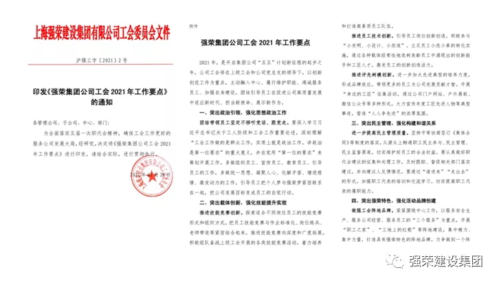 在强荣建设集团总结表彰大会上,董事长指出,当前,我们要以集团公司工会换届为契机,把各级各部门的执行力强起来,通过党建带工建带团建系列活动,努力激发广大员工热情,让听党话、跟党走成为每个员工不变的追求,让每个员工都成为公司“五五”计划大考中的答卷人,并以此考验每个员工的忠诚。在五届一次职代会上,董事长强调,集团公司总裁办及各部门要全力支持工会工作,要为工会推进工作创造良好环境,作为工会组织,要以落实职工代表建议为抓手,在广大职工建言献策上做文章,充分调动好职工的积极性和创造性。