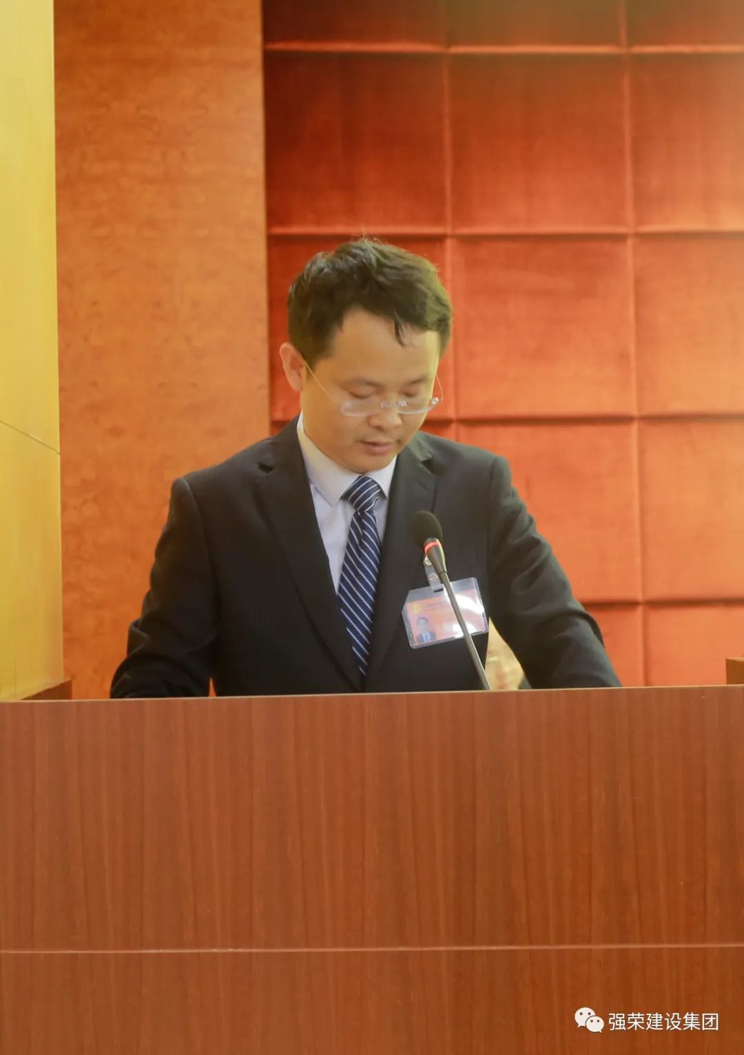 集团公司党总支书记、董事长丁广祥发表重要讲话,集团公司总裁丁雪云主持大会。