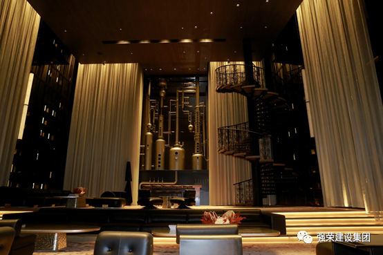 位于酒店五楼的Leisure Hall,背景的酿酒装置和铁艺旋转楼梯,展现了一个作家的休息室,书写着作家的诗意生活。