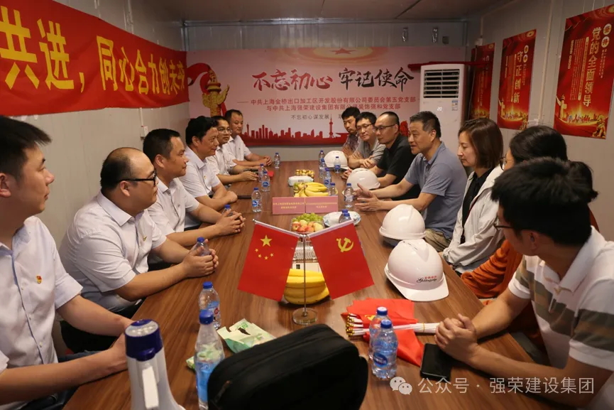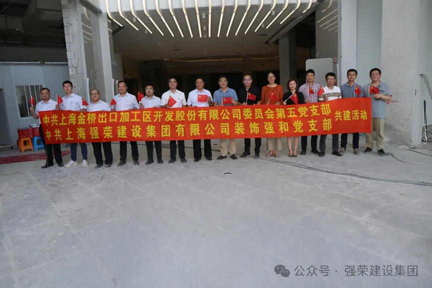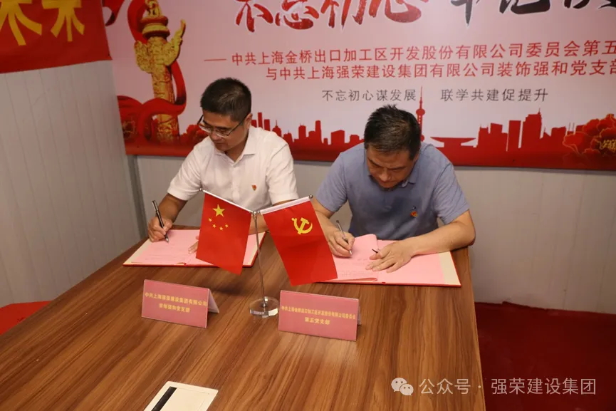 为了进一步贯彻落实党的二十大会议精神,加强党组织的横向交流与跨界合作,努力形成携手共进、合作共赢的良好局面,8月5日下午,中共上海金桥出口加工区开发股份有限公司委员会第五党支部、中共上海强荣建设集团有限公司装饰强和党支部在张江73-02项目部举行党建共建签约仪式。